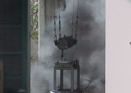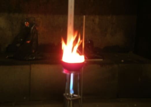 燃焼時の激しさを評価する試験法で、BAM(ドイツ連邦材料試験所)で開発された試験です。約700℃に熱した直径120mmの半球状の鉄皿に5gの試料を投入し、着火するか否か、着火した場合は燃焼状況を観察します。