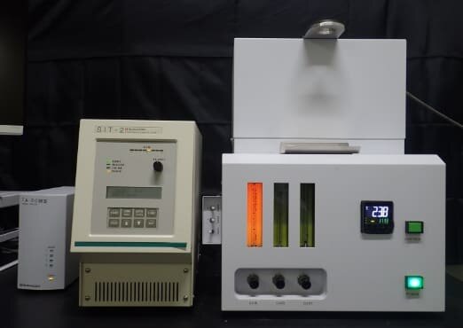 自然発火とは、「物質が空気中で発火温度よりはるかに低い温度で自然に発火し、その熱が長時間蓄熱されて発火点に達し、遂に燃焼に至る現象」と定められており、SIT(Spontaneous Ignition Tester:自然発火装置)は数gの試料を断熱状態に置き、燃焼にいたるまでの時間を測定する装置です。