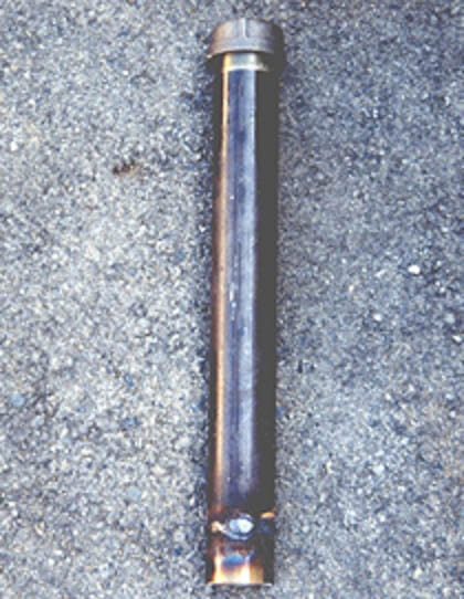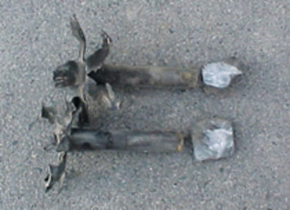 【爆発性有(+)】 鋼管が完全に裂けるまたは証拠板に穴が空く 【爆発性無(-)】 鋼管が裂けずに残り証拠板に穴が空かない |