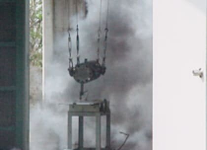 IATA特別規定A115対応の外部火災試験(ボンファイアー試験)で、特にエアバッグ類に対して行う試験です。