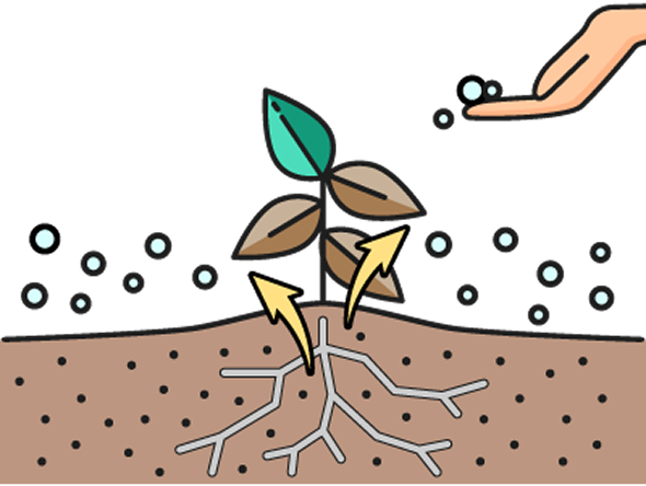 散布後、土壌中で分解し、自然物になるため、環境に優しい除草剤です。