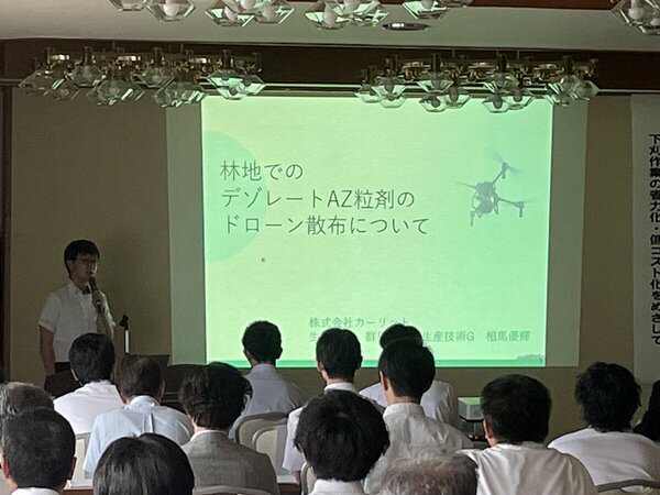 今回、福島県森林・林業・緑化協会の普及啓発事業の一環として8月26日に開催された「第2回ふくしま皆伐再造林セミナー」にて、「林地でのデゾレートAZ粒剤(除草剤)のドローン散布について」の発表を行いました。